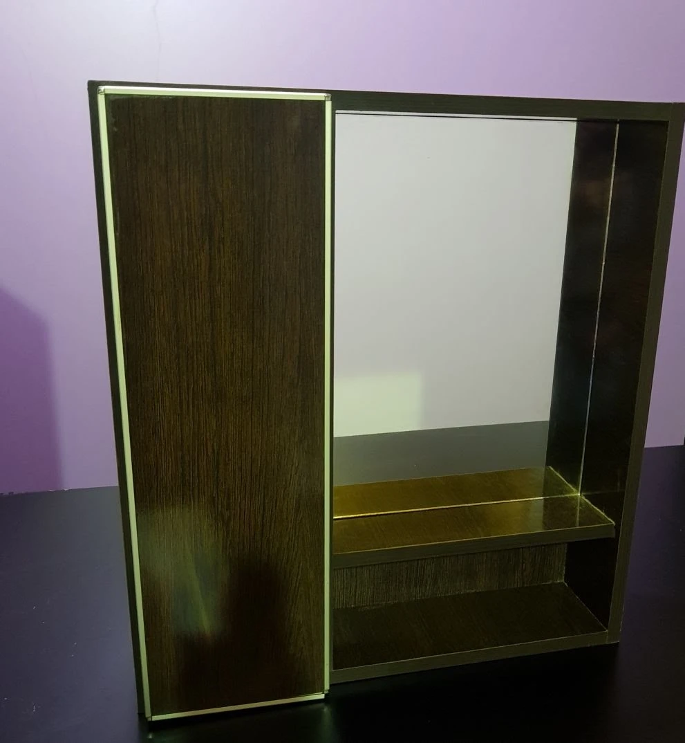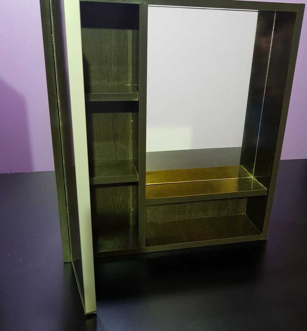 Botiquín de baño con espejo en melamina color, medidas 55 cm de alto, 45 cm de ancho y 10 cm de profundidad.