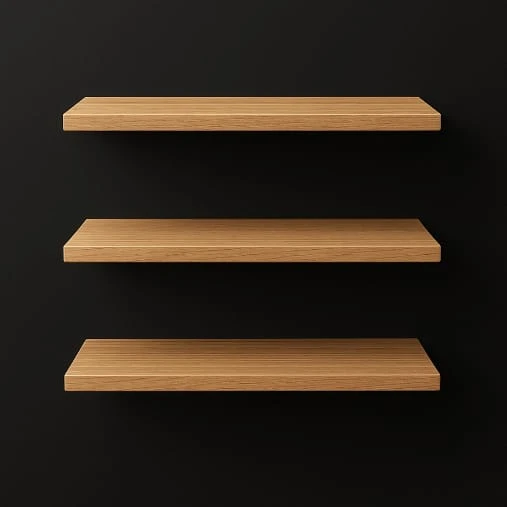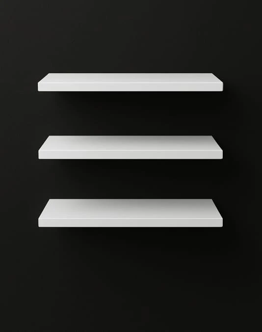 Estante flotante de melamina blanca con cantos de color, disponible en varias medidas para adaptarse a tus necesidades de almacenamiento y decoración.